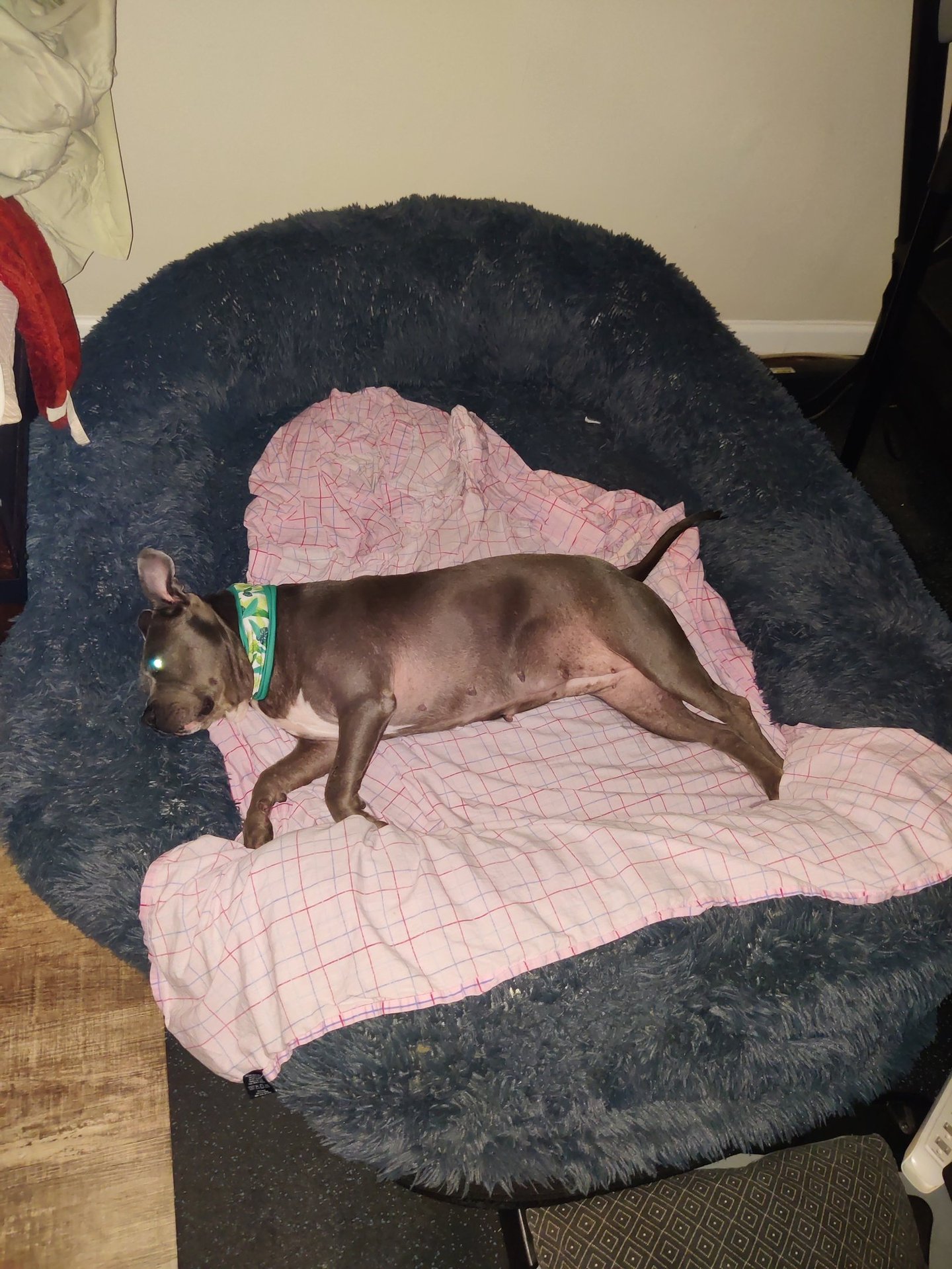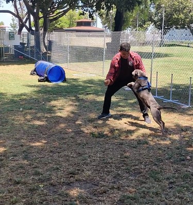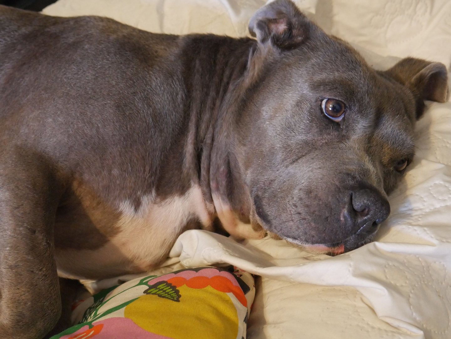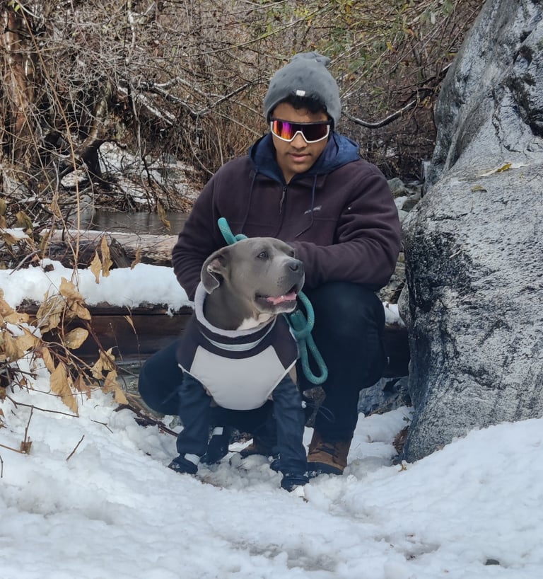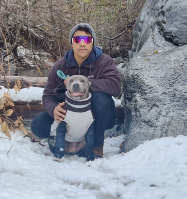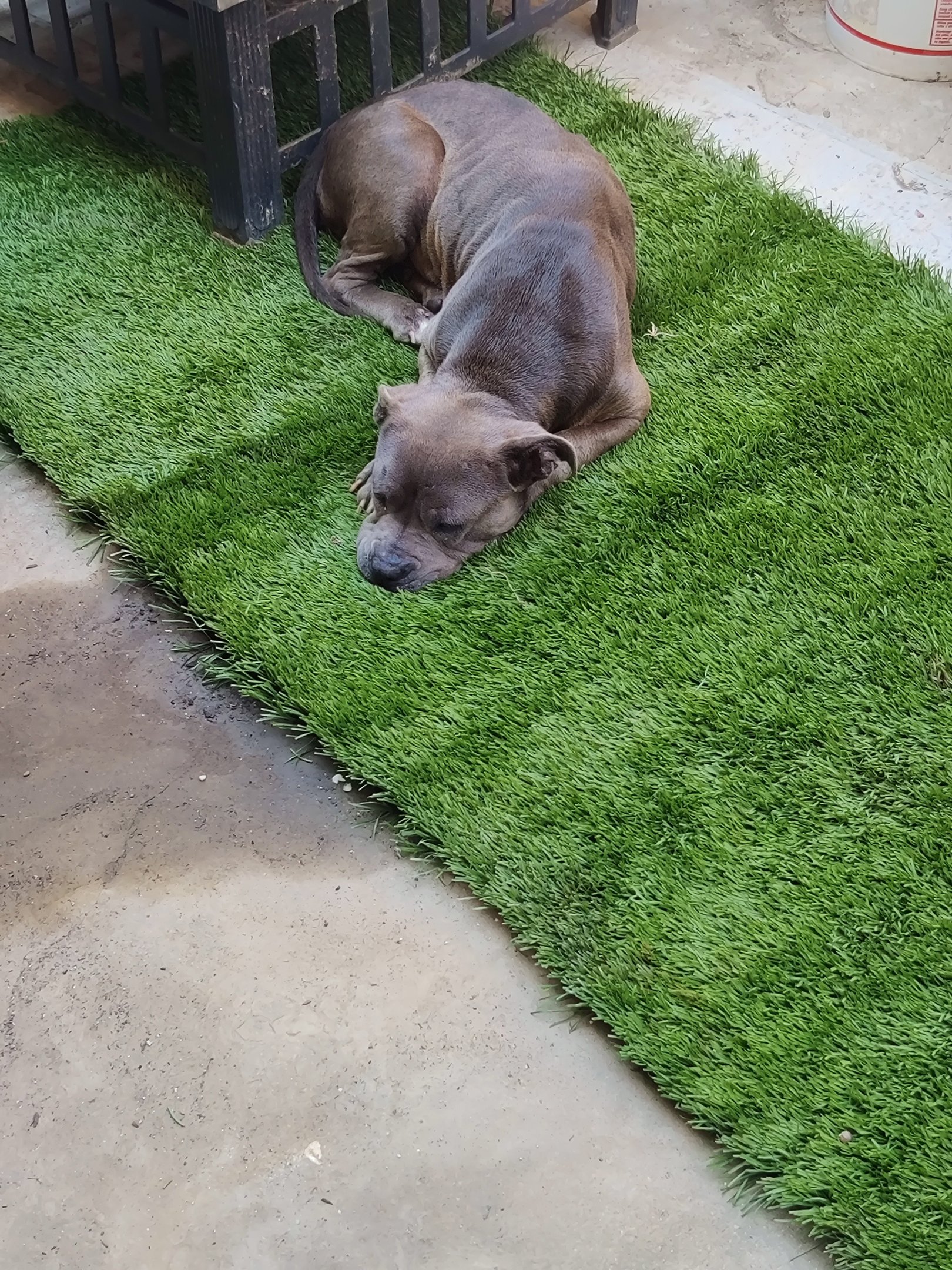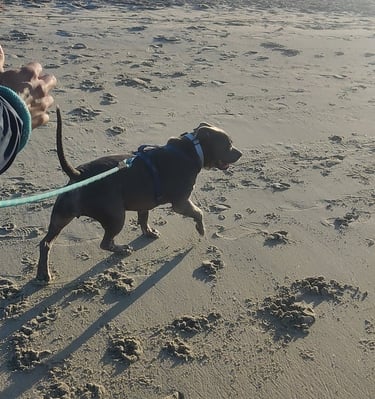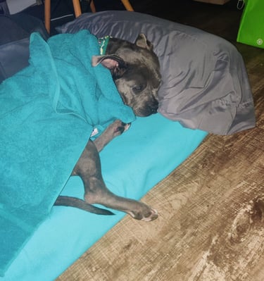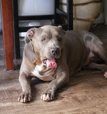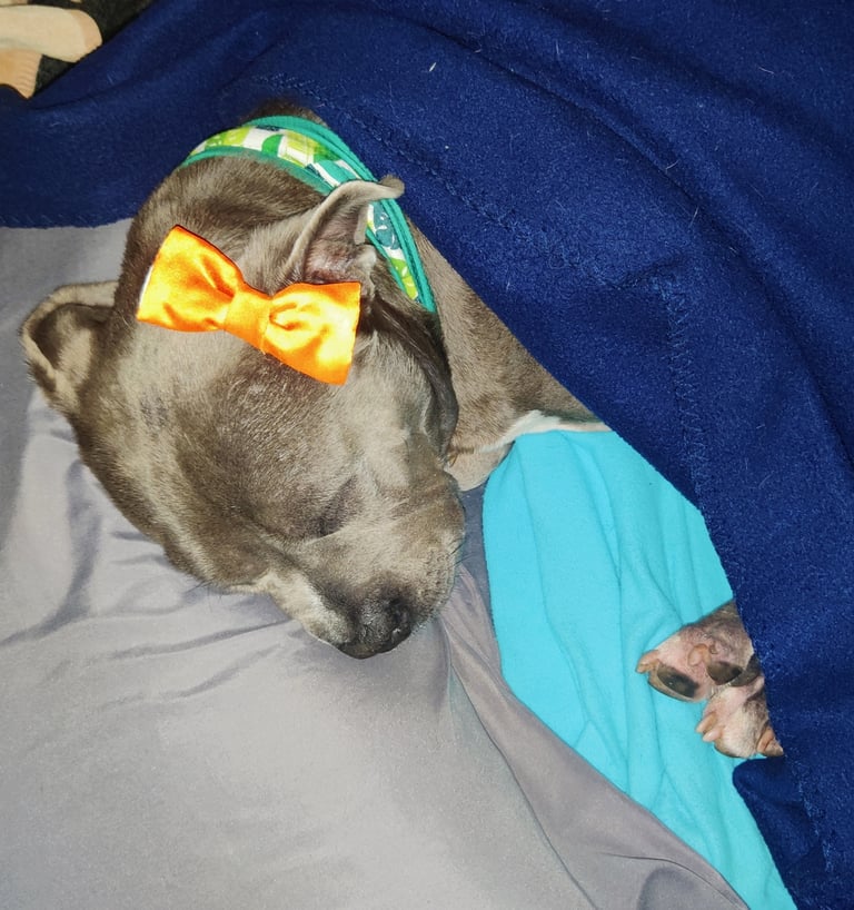 In July 2024, we found Little Pea, a beautiful Staffordshire Terrier, abandoned in Compton, CA. She was very skinny, sick, and injured. Veterinarians believe she was likely used for breeding and then abandoned, as she had recently given birth and is now a senior dog. With no shelters or rescues able to take her in, and our hearts unwilling to let her be discarded or euthanized, we knew we had to act. Living in an apartment without a yard, we could not keep Pea with us, so we asked Grandma if she could give Pea a loving home. Grandma agreed, and we promised to take care of all her needs.