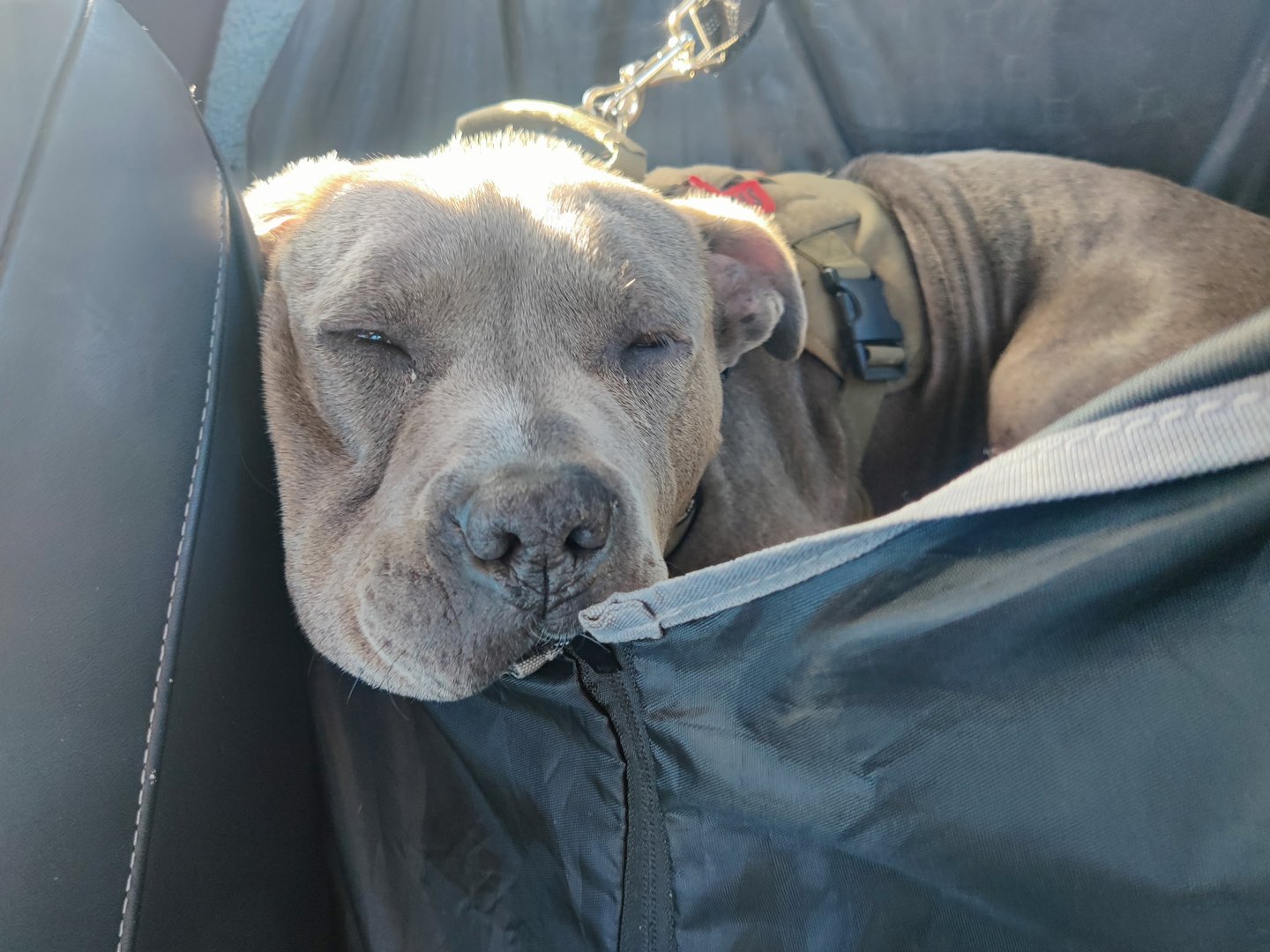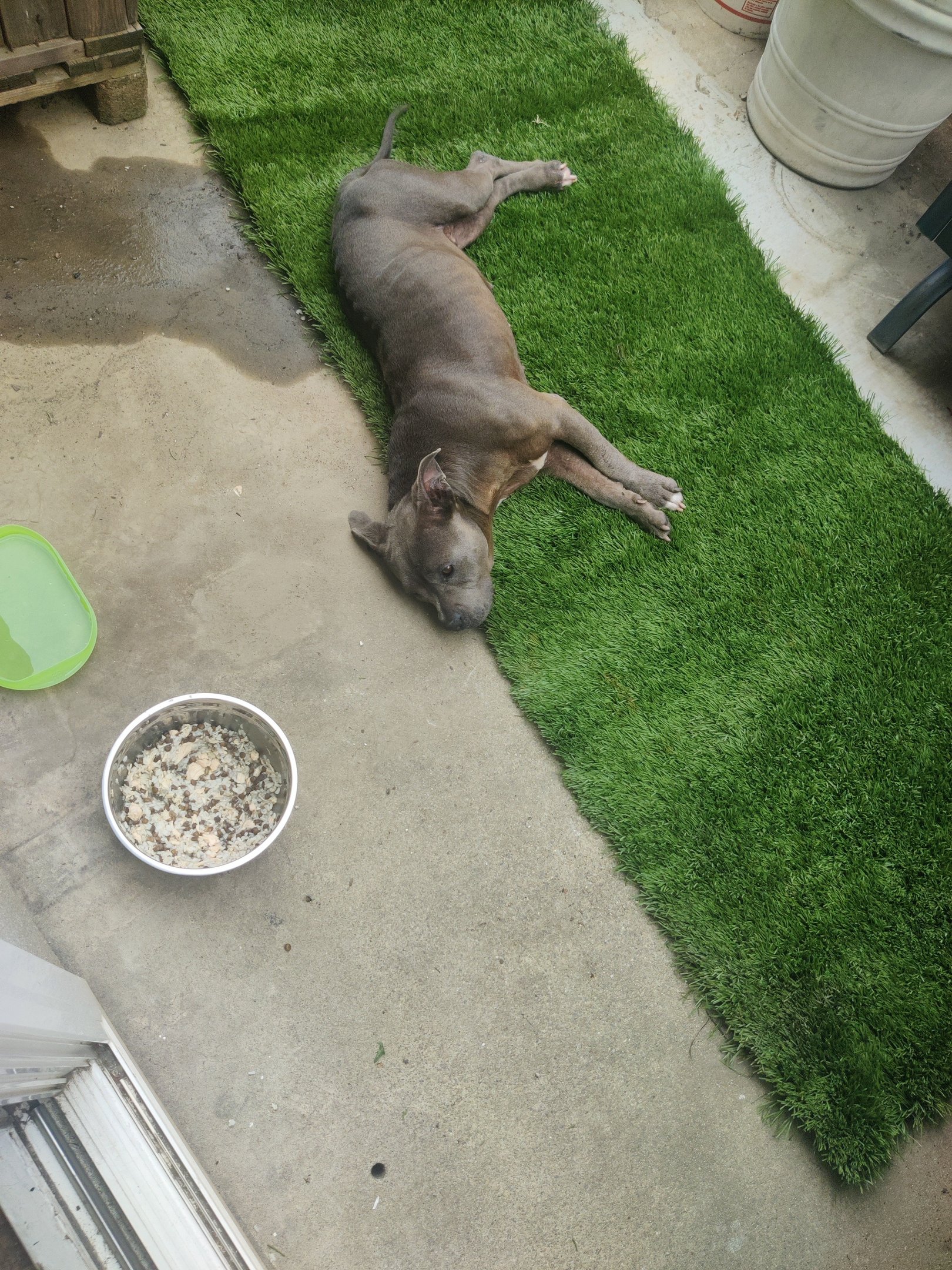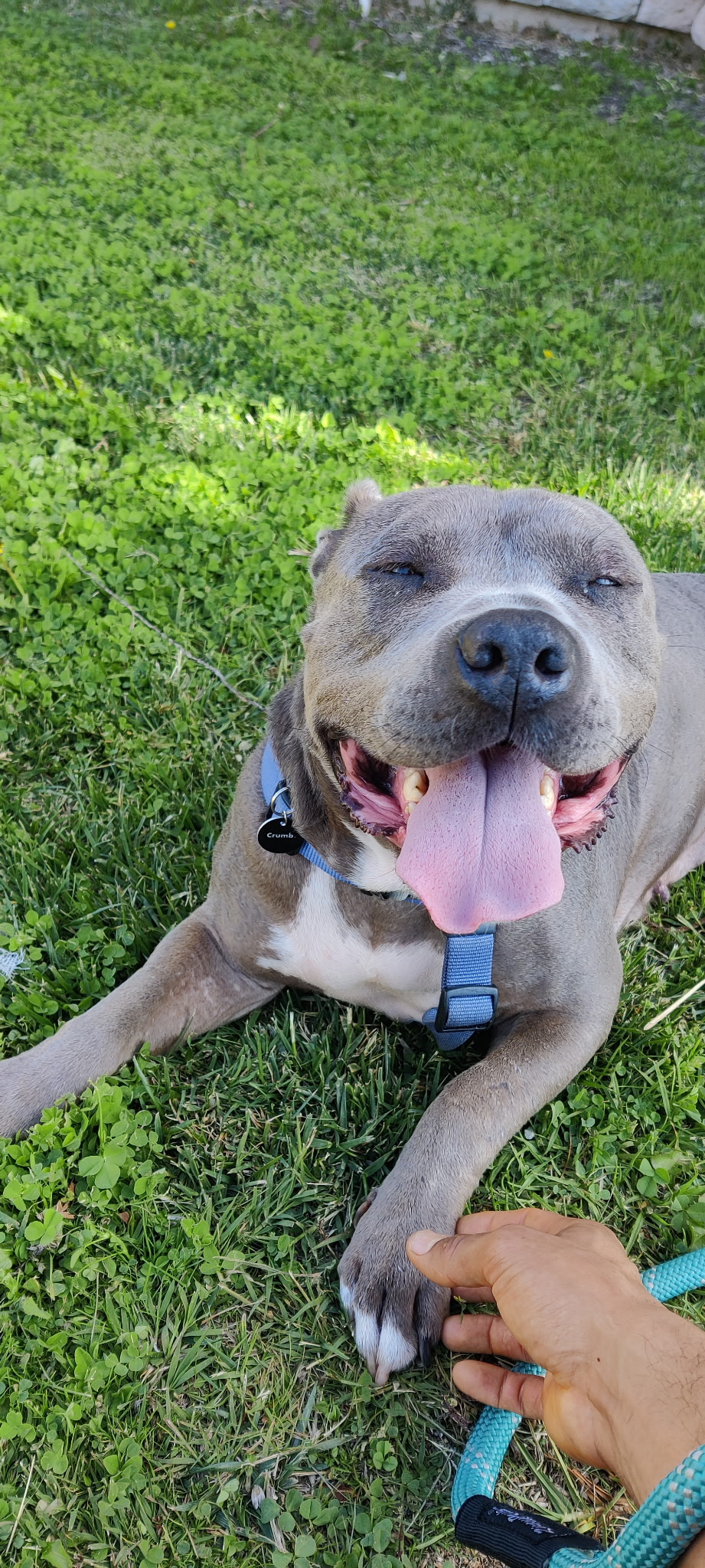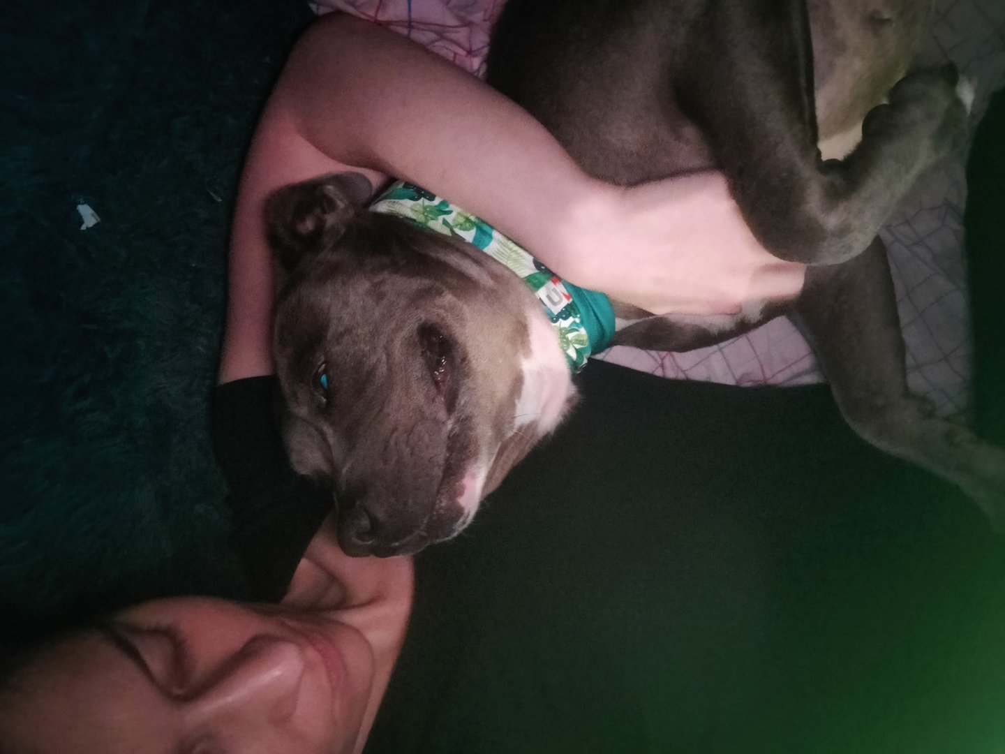 In July 2024, we found Little Pea, a beautiful Staffordshire Terrier, abandoned in Compton, CA. She was very skinny, sick, and injured. Veterinarians believe she was likely used for breeding and then abandoned, as she had recently given birth and is now a senior dog. With no shelters or rescues able to take her in, and our hearts unwilling to let her be discarded or euthanized, we knew we had to act. Living in an apartment without a yard, we could not keep Pea with us, so we asked Grandma if she could give Pea a loving home. Grandma agreed, and we promised to take care of all her needs.